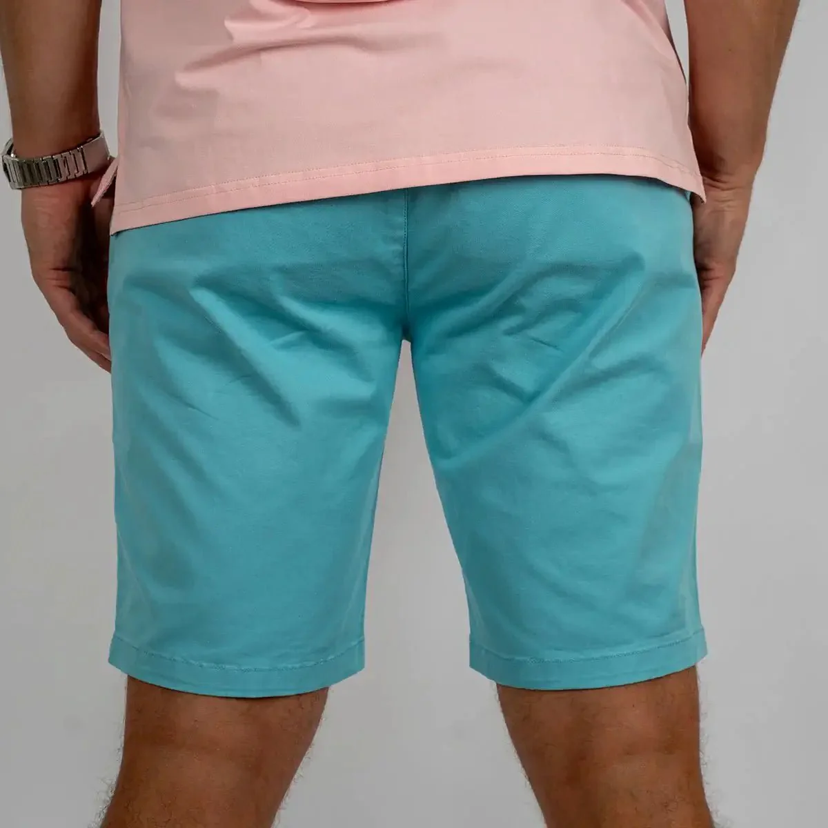 Apportez une touche de fraîcheur à vos tenues estivales avec ce bermuda chino turquoise. Élégant, confortable et pratique, il est idéal pour les beaux jours.