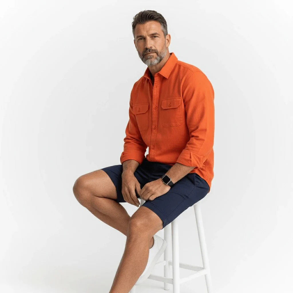 Adoptez le bermuda chino bleu marine qui coche toutes les cases : coupe impeccable, détails travaillés et confort quotidien. Décliné du 38 au 52, il s’adapte à toutes les morphologies avec un esprit sport élégant signé BACK TO LEGEND.