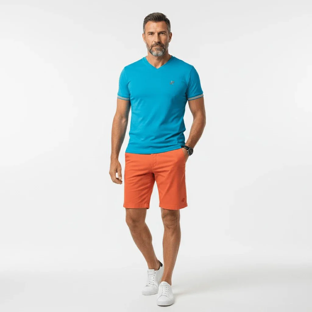 Envie d’une pièce originale et confortable pour cet été ? Ce bermuda chino orange est fait pour vous. Confort stretch, finitions impeccables, et un style affirmé pour les hommes qui aiment sortir du lot. Un indispensable au caractère bien trempé.