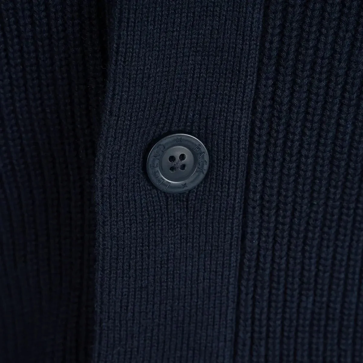 Ce gilet boutonné bleu marine signé BACK to LEGEND incarne le parfait équilibre entre style et confort. Tricoté dans un mélange doux de coton et cachemire, il offre une maille souple et agréable à porter au quotidien.