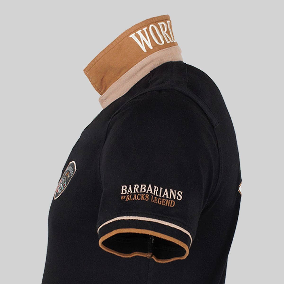 - Broderie "BARBARIANS BY BLACKS LEGEND" sur la manche gauche